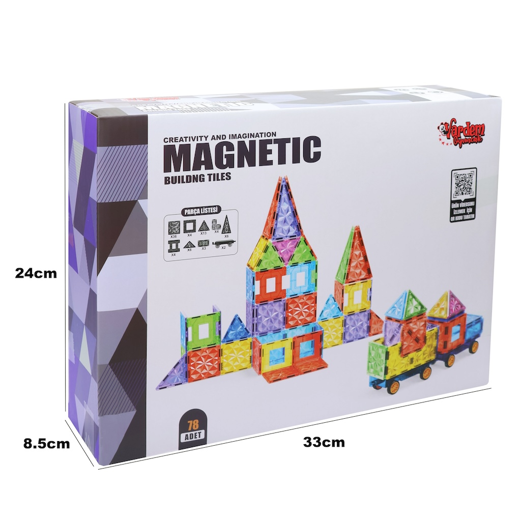 Vardem 78 Parça 7,5 Cm Manyetik Yapı Blokları Tanıtım Videosu