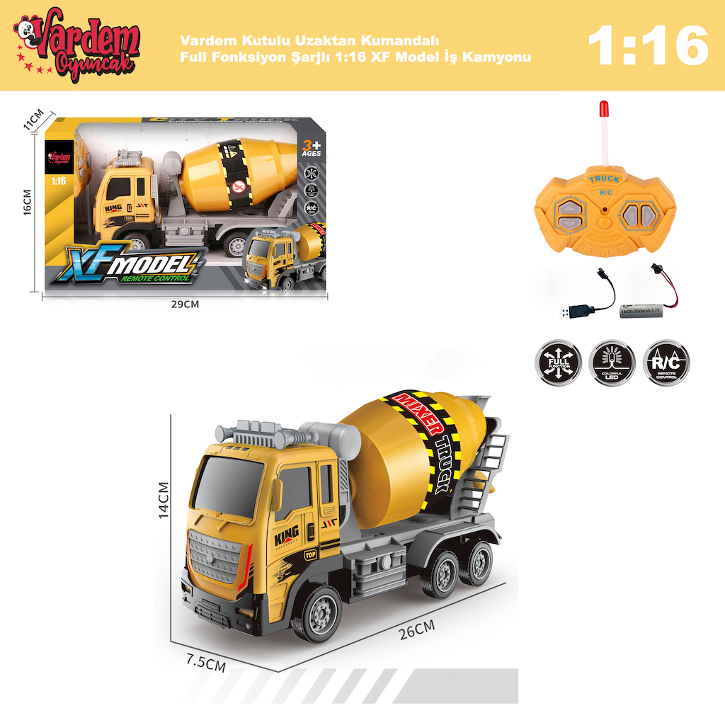 Vardem Kutulu Uzaktan Kumandalı Full Fonksiyon Şarjlı 1:16 XF Model İş Kamyonu